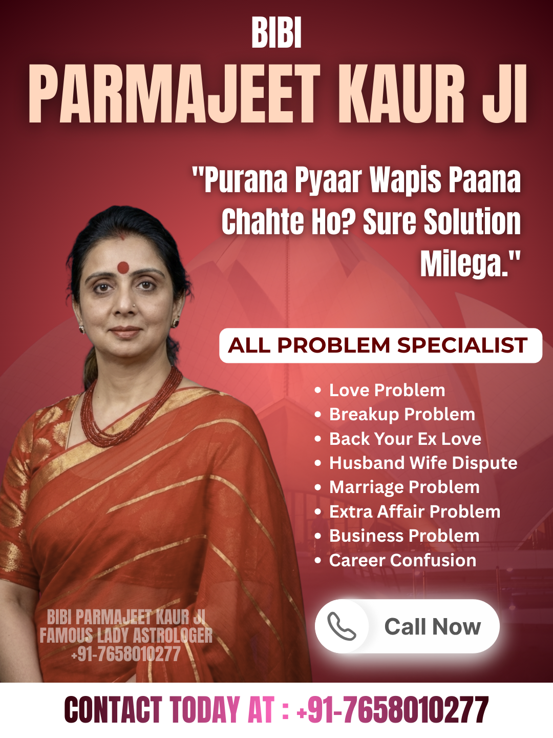 Astrologer Paramjeet Kaur Ji is a trusted name in the field of astrology, known for offering genuine guidance and practical solutions to life’s challenges. With years of experience and deep knowledge of Vedic astrology, she has helped countless individuals find clarity in love, marriage, career, and personal growth. Her approach is simple yet powerful—understanding your situation with compassion and guiding you with accurate predictions and effective remedies.